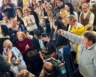 Al tomar el micrófono, Elena expresó visiblemente emocionada: “Quiero decir que estoy muy conmovida, muy agradecida. He estado enferma y salir de la enfermedad para encontrarme con ustedes es como llegar al cielo, un hecho luminoso. A mi edad cada gesto adquiere otra dimensión. Es muy bonito salir de la cama y llegar al paraíso. Esto lo voy a agradecer todos los días que sigan.”