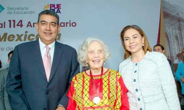Elena Poniatowska recibió la Medalla Carmen Serdán en Puebla.